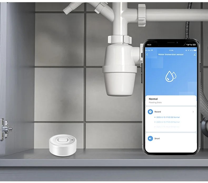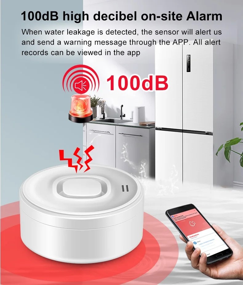 Защитите свой дом от неожиданного повреждения водой с помощью этого умного Wi-Fi детектора протечек воды. Устройство немедленно отправляет уведомления на ваш телефон и включает громкую сигнализацию, как только обнаруживается вода.