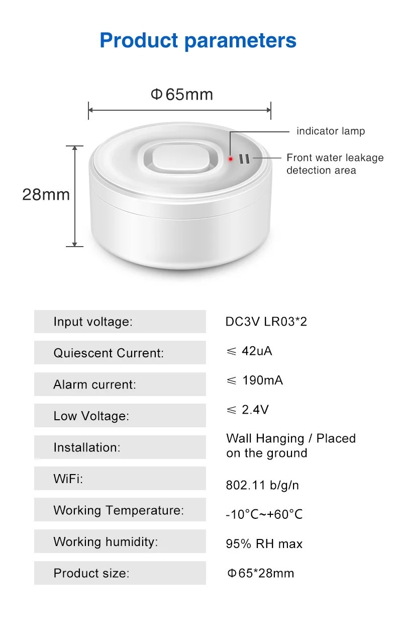 1 × Wi-Fi датчик протечки воды (батарейки в комплект не входят)